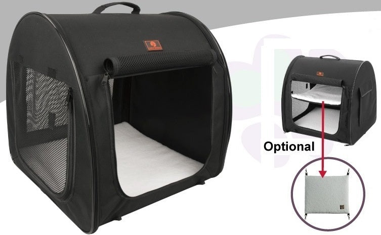 This soft-sided folding fabric kennel is part of our newly released Black Travel Accessories Series. It is designed to use as an indoor/outdoor pet home, or a show shelter. It comes with Single and Double Kennel options.