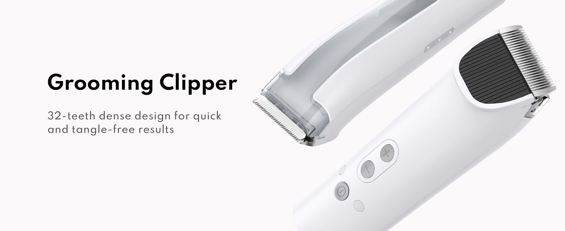 Homerun HC15 the Grooming Kit is a pet vacuuming set that integrates all functions of combing, shaving, thinning, detangling, suctioning and massaging into one. It has 6 replaceable heads that can cover the needs of pet owners in all scenarios. It has a suction power of up to 12000Pa and can absorb 96.75% of dust as small as 0.3 microns. With the low-noise level design, as low as 50dB(A), your pet will not be frightened. Moreover, it uses a spiral cyclone to efficiently separate dust and dirt, and the 1.85L extra-large dust cup can accommodate more hair and debris. With this grooming set, pet owners can easily solve the problem of taking care of pet hair.