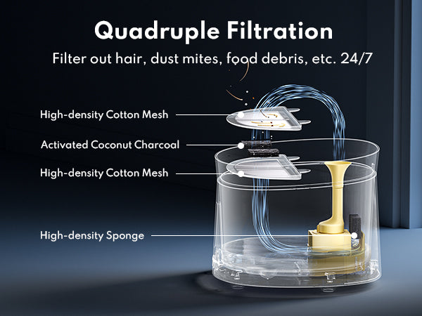 - It is recommended to clean the water filter element and accessories (including the inner bucket, outlet pipe, water pump, and sponge) at least once a week to prevent blockage and bacterial growth.