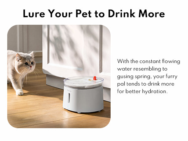 - Energy-efficient: The CF20 operates on a 5V-1A power supply, consuming as little as 1.5 kWh per month. The concave design of the inner barrel and the bottom suction principle of the pump minimize water waste, aligning with the concept of energy conservation.