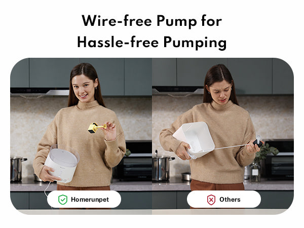 - Wireless water pump with 99% sterilization rate: The pump features a built-in high-power UVC-LED that periodically releases ultraviolet light, effectively killing bacteria and reducing biofilm production for long-term antibacterial effects.