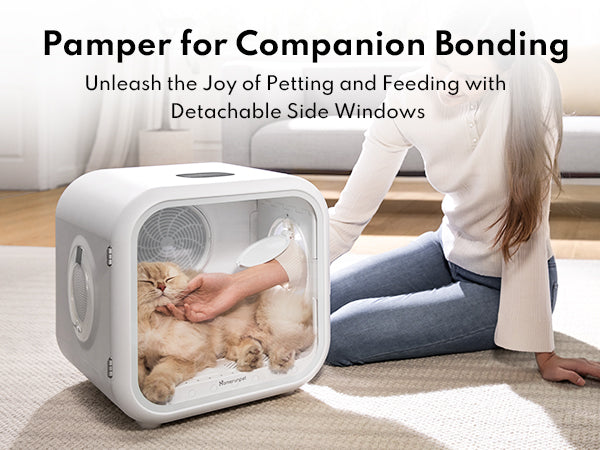 - Before initial use, remove the windows on both sides and let pets adapt to the drying box gradually.