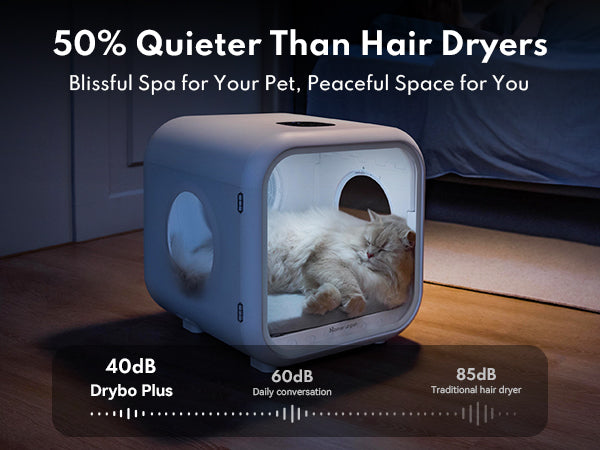 39度腔体智能烘干箱是宠物毛发烘干的先进解决方案,采用NTC智能变频控温技术,模拟猫狗最舒适的39度温度感,采用直流无刷风扇,噪音低至40分贝,利用阿基米德螺旋线原理,烘干均匀无死角,内置高精度传感器及过热保护元件,全方位保障宠物安全。50升大容量,双窗口设计,方便人宠互动,智能变频控温,无温度变化带来的不适,享受SPA级舒适呵护。