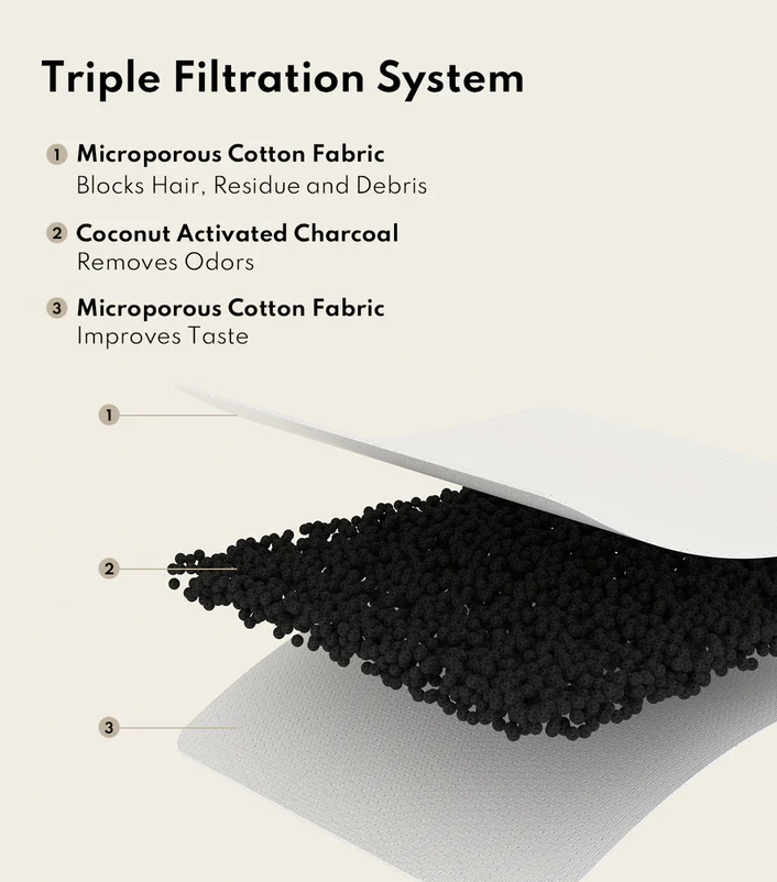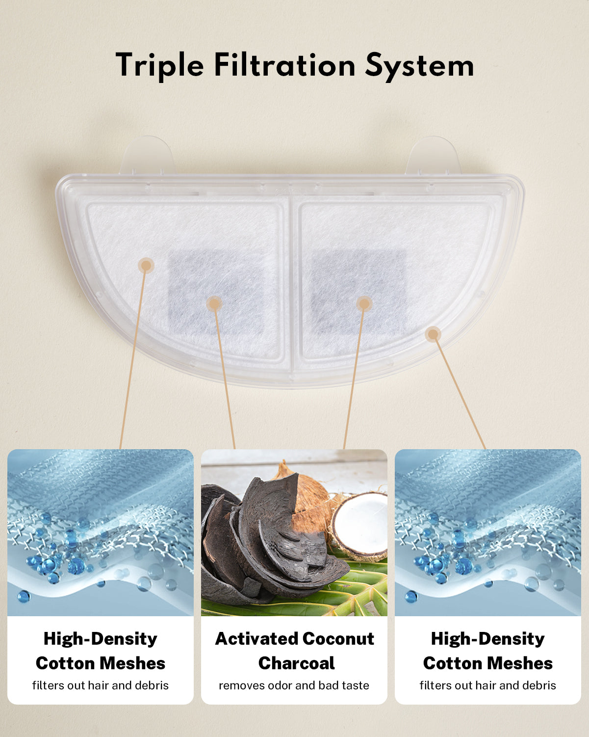 - 使用过滤系统净化自来水,去除毛发、细小碎片和残留氯。