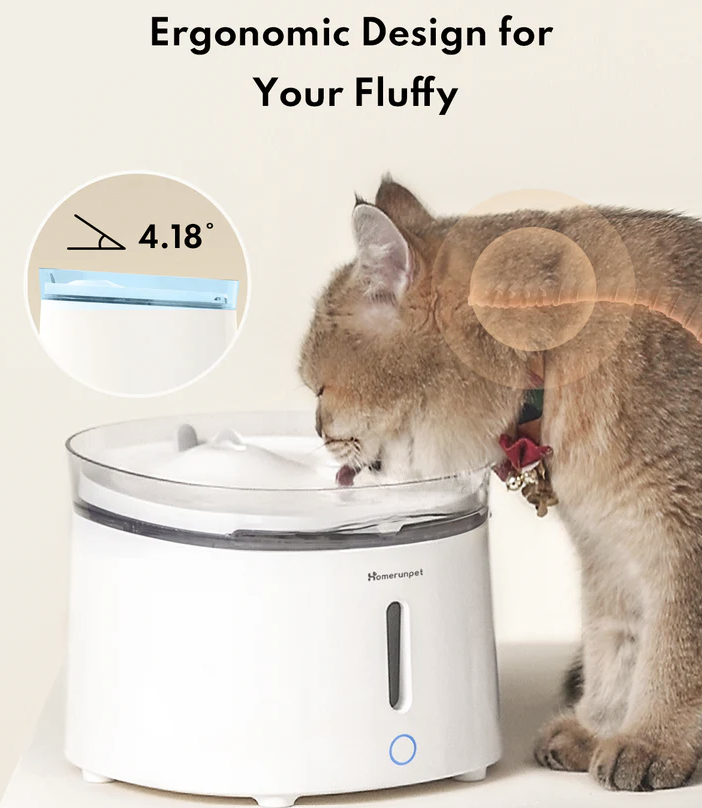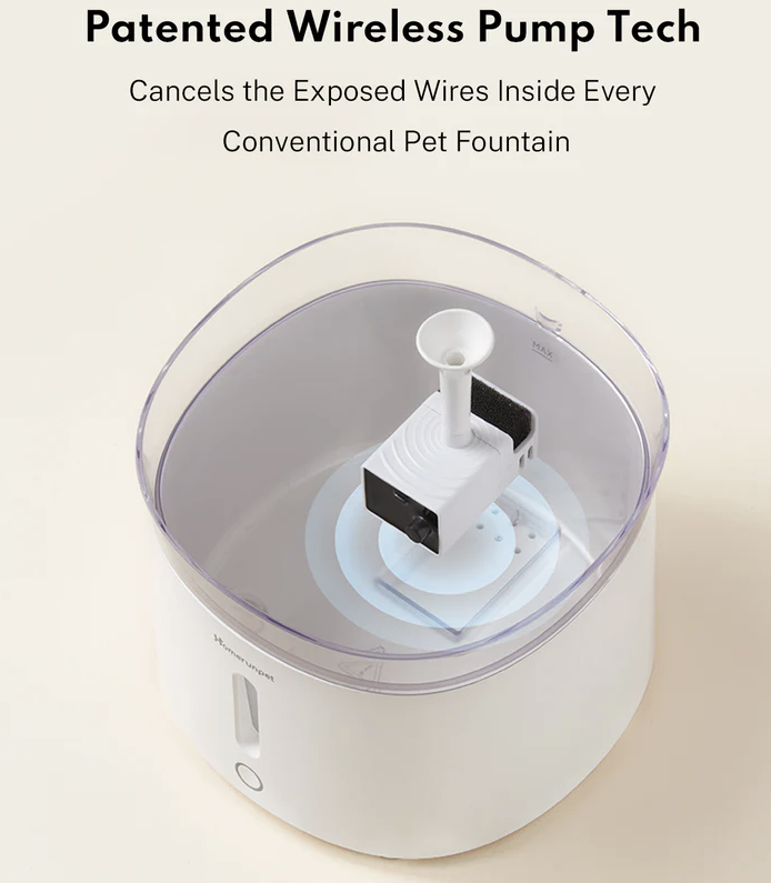 介绍 Homan,这是一款具有创新功能的无线宠物饮水机。它采用无线磁感应供电技术,确保安全和清洁。它拥有 20 个静音水道,运行噪音低至 20 分贝,通过三重过滤提供干净的水。该设计包括独立的内外桶以及防干烧系统、异物识别和滤芯更换提醒等智能功能。饮水机模拟新鲜潺潺的水声,鼓励宠物饮水,让主人安心。