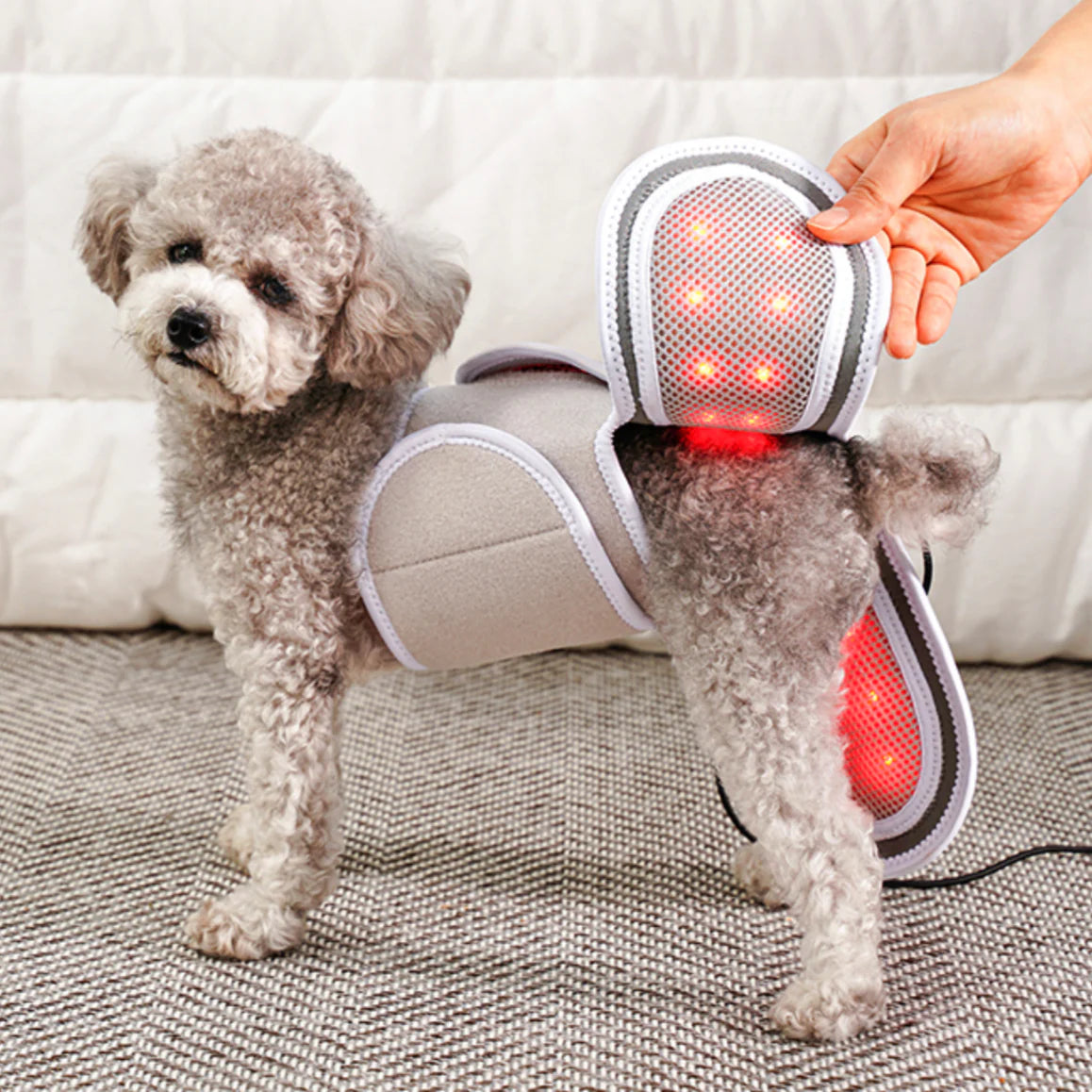 LLLT Warm Cape is a pet pain treatment device that utilizes LLLT (low level laser therapy) with near-infrared rays to penetrate deep into the body and provide targeted and comfortable warmth to the legs, hips, and spine. With 56 LED chips and three temperature levels, it ensures convenience and safety with its foldable, ultra-lightweight design and protective mesh.