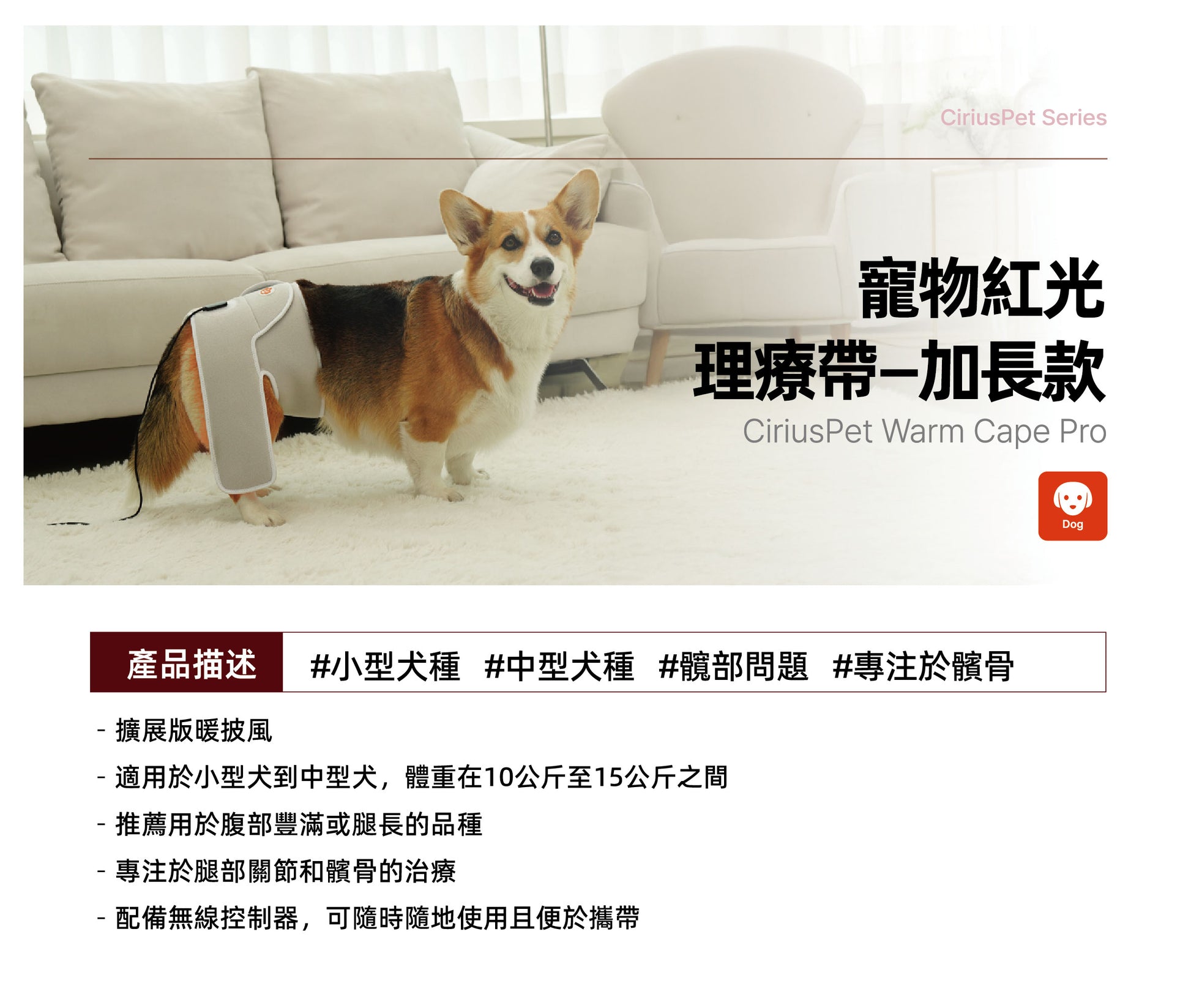 LLLT Warm Cape Pro is an extended version of the LLLT Warm Cape. It is a pet pain treatment device that utilizes LLLT (low level laser therapy) with near-infrared rays to penetrate deep into the body and provide targeted and comfortable warmth to the legs, hips, and spine. With 56 LED chips and three temperature levels, it ensures convenience and safety with its foldable, ultra-lightweight design and protective mesh.