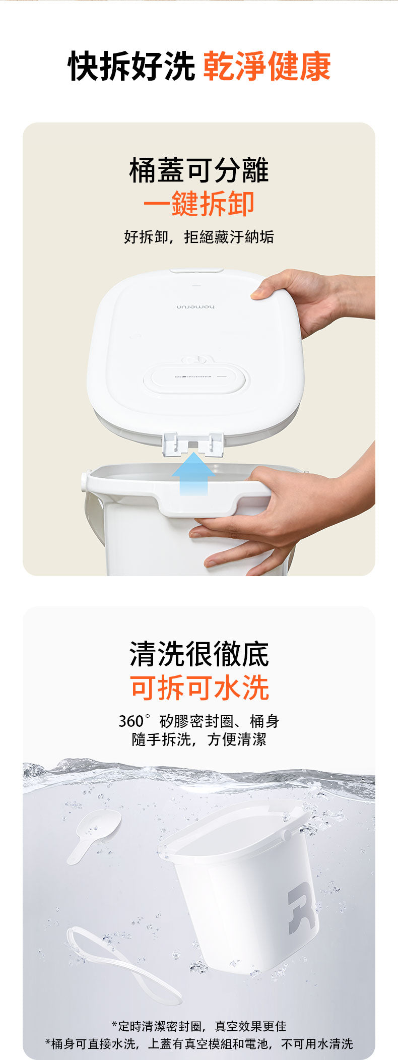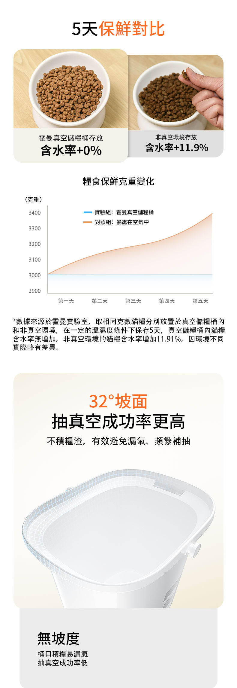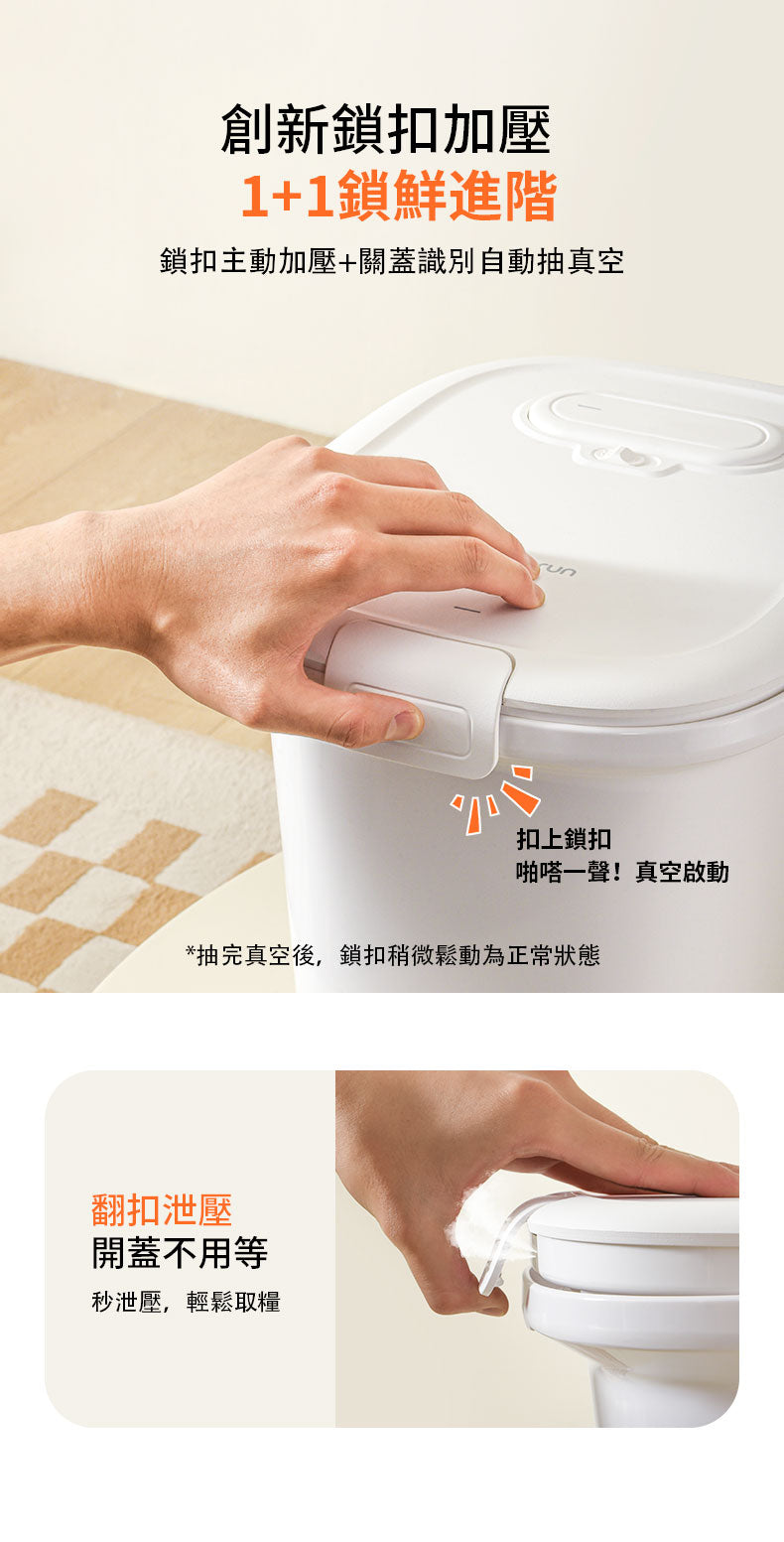 6-layer freshness protection – Locking latch, vacuum seal, 360° silicone ring, moisture-absorbing pack, smart pressure control, and 32° sloped design.