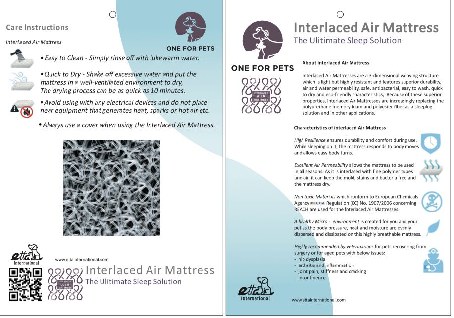 Interlaced充氣床墊採用3維編織結構,質地輕但強度高,具有優越的耐用性、透氣透水性、安全性、抗菌、易洗、快乾、環保等特性。