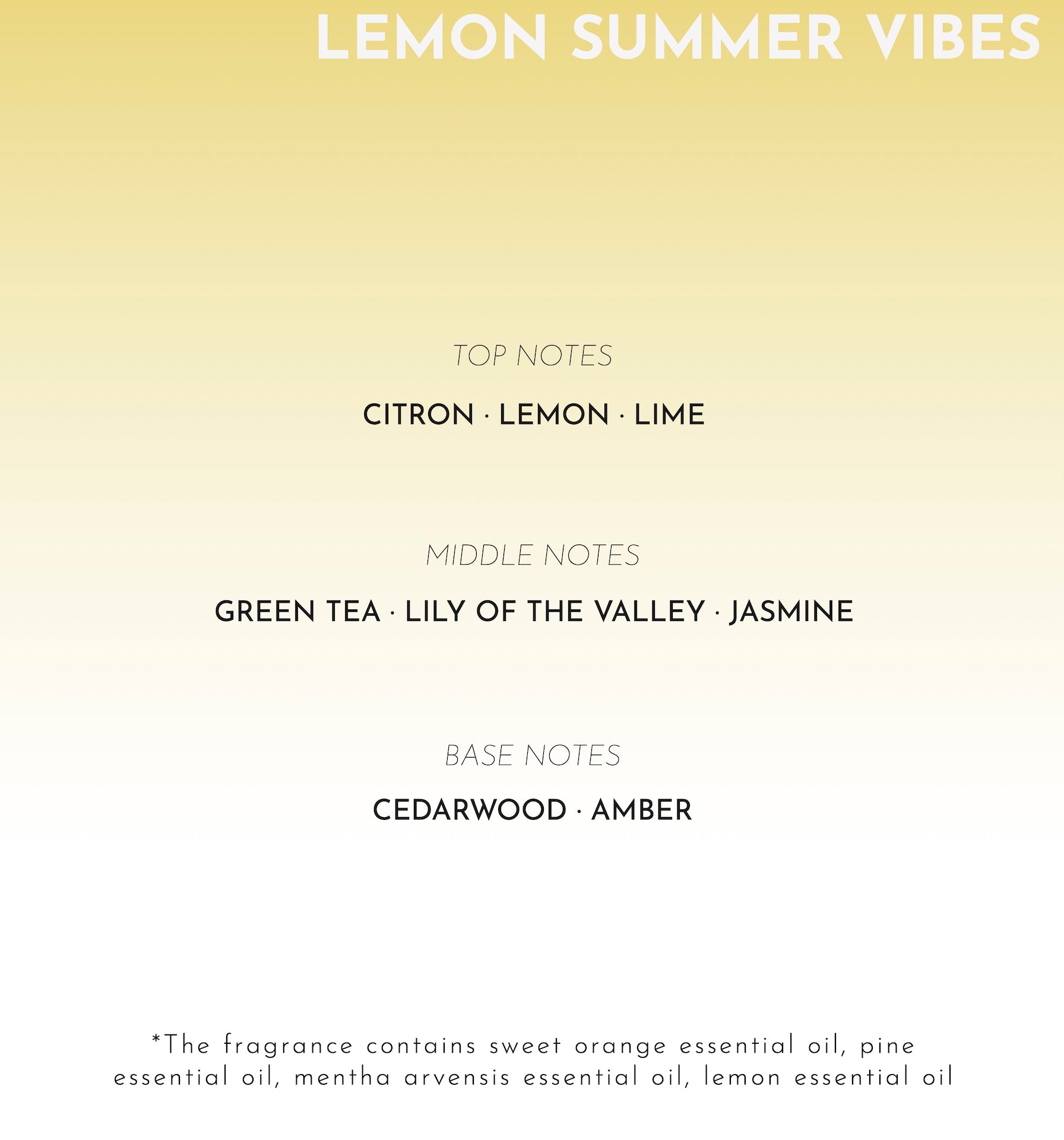 Lemon Sumer Vibes: Citron, Lemon, Lime, Green Tea, Lily of the Valley, Jasmine, Cedarwood, Amber